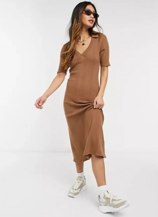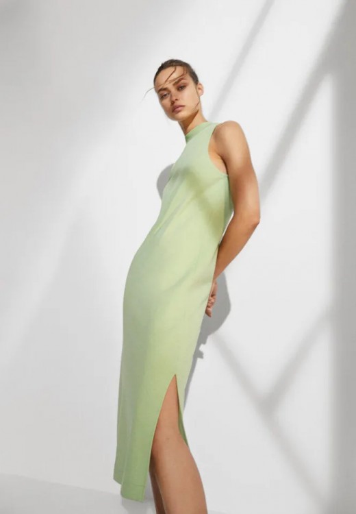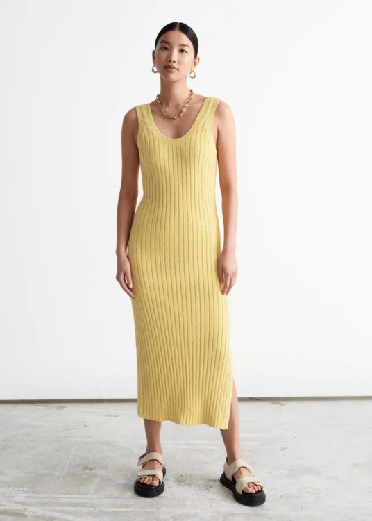 Підкреслити фігуру допоможе трикотажна сукня в рубчик. Ми підібрали для вас модель трендового кольору року – жовту. Носіть її зі шкіряними босоніжками і лаконічною сумкою через плече.