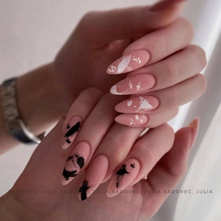 Хочете зробити недбалий дизайн? Тоді до вашої уваги манікюр з “ляпами” у вигляді безлічі невеликих цяток, ніби нігті оббризкали брудом.