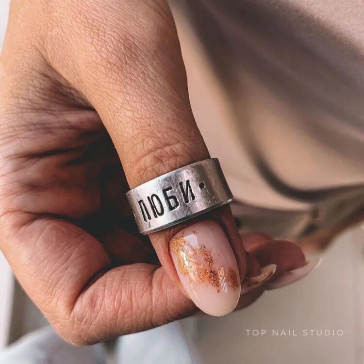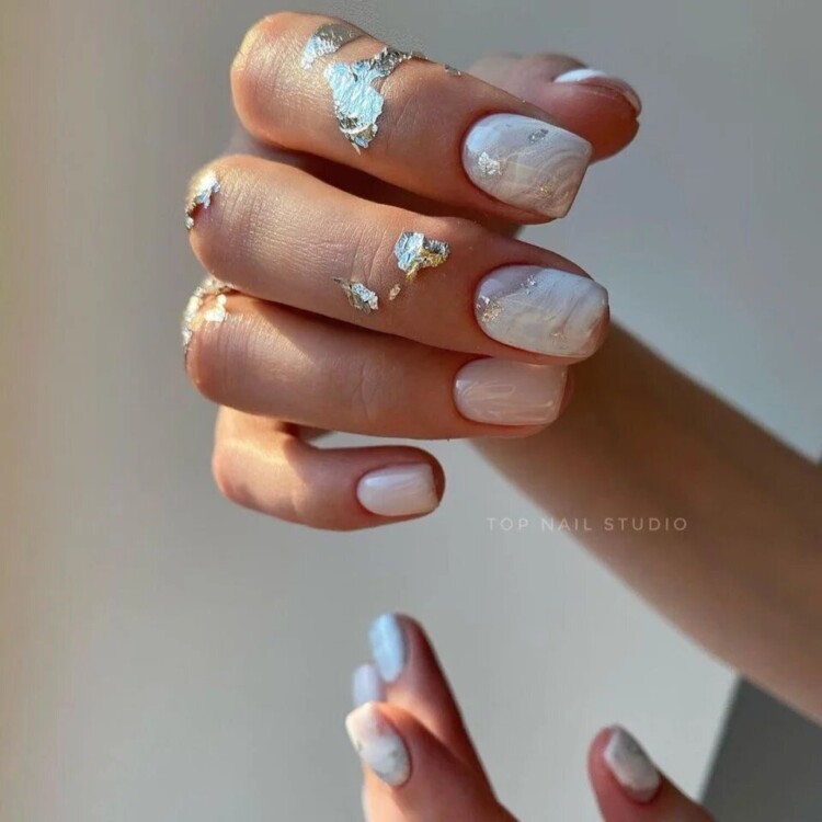 Взимку 2020-2021 варто придивитися до ніжних нюдових дизайнів з золотим декором, як на фото нижче.