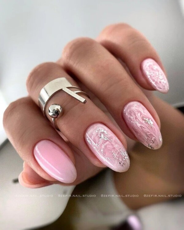 Справжні дівчата оцінять манікюр з використанням ніжного рожевого відтінку, як на фото нижче.