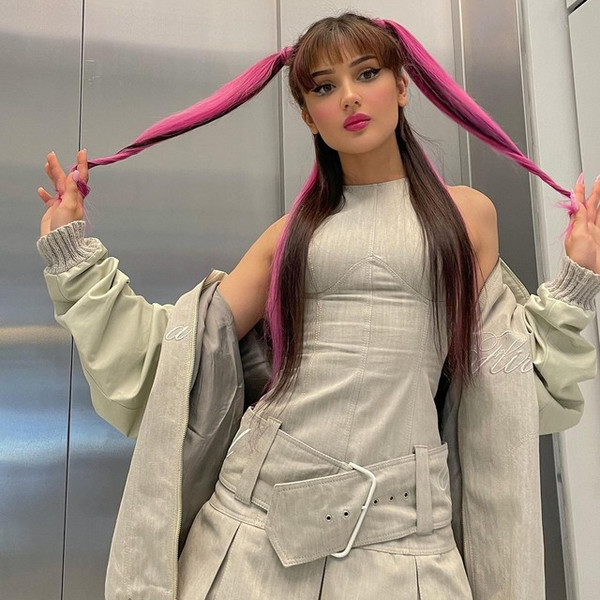 Якщо влітку ви наважилися пофарбуватися в яскравий відтінок, то восени насолоджуйтесь волоссям по повній, поки фарбування не змилося. Модну ідею для зачіски підказує Діна Саїве: яскраві хвостики з боків з розпущеним волоссям позаду.