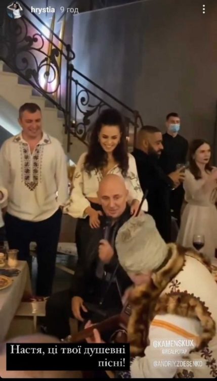 Подружжя побувало на різдвяній вечірці своєї подруги та бізнесвумен Христини Хроновської. В Instagram-stories жінка поділилась кадрами зі святкування. На них можна відразу помітити Настю Каменських та Потапа.