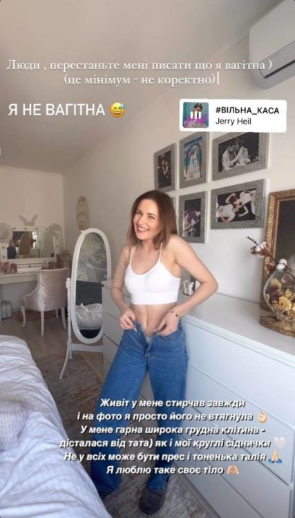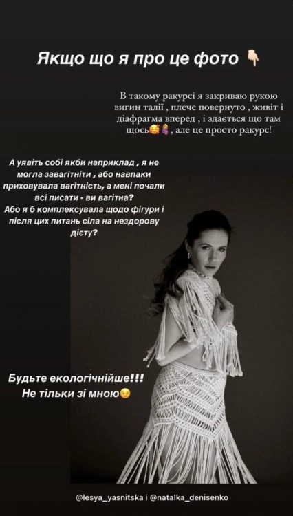 Через деякий час Наталія Денисенко все-таки прокоментувала чутки про свою вагітність. В Instagram-stories вона опублікувала кадр, продемонструвавши стрункий животик. Також акторка додала, що не вагітна.