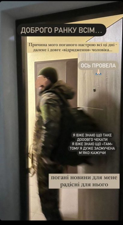 Наталія Денисенко показала, як проводжала коханого на війну. В Instagram-stories вона опублікувала світлину з чоловіком. Перед камерою Андрій Федінчик постав у військовій формі.