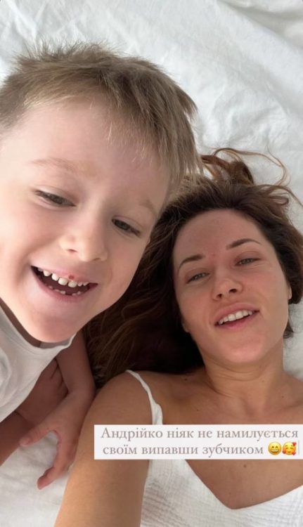 Також зірка українського шоу-бізнесу опублікувала фото з сином. Хлопчик ніжно пригорнувся до мами, продемонструвавши щасливу усмішку. “Андрійко ніяк не намилується своїм зубчиком, що випав”, – заявила Наталія Денисенко. За словами акторки, днями в її сина випав перший молочний зуб.
