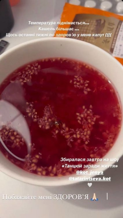Також Наталія Денисенко додала, що в неї з’явився кашель. Жінка відразу зайнялась лікуванням. Аби збити високу температуру, акторка випила ліки та заварила собі вітамінний час з малиною. “Температура підіймається.. Кашель більшає… Щось останні тижні по здоров’ю у мене капут. Завтра сподіваюсь, що буду здорова. Будь ласка, побажайте мені здоров’я”, – повідомила Наталія Денисенко.