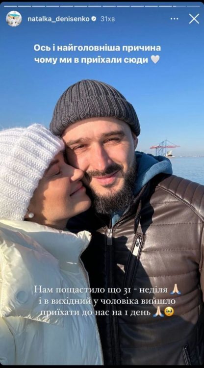 Проте, нещодавно чоловіку все-таки вдалося зустрітись зі своєю дружиною. Подробицями Наталія Денисенко поділилась в Instagram-stories. Акторка опублікувала світлину з коханим та заявила, що цей Новий рік вони зустрінуть разом. Перед камерою Наталія Денисенко постала щасливою та усміхненою.