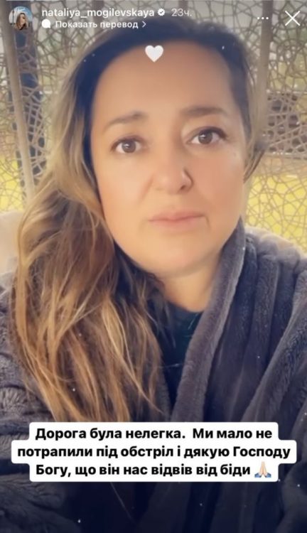 Не так давно вона розповіла, як ледь не опинилася в центрі атаки іранських дронів. Подробицями Наталія Могилевська поділилась в Instagram-stories.