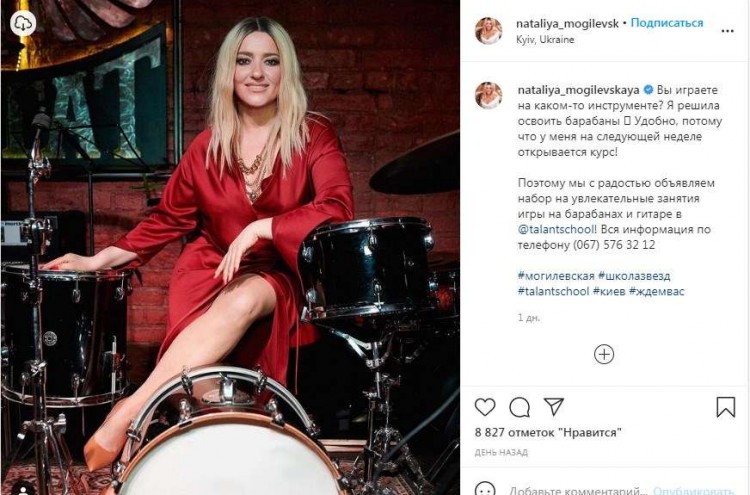 «Ви граєте на якомусь інструменті? Я вирішила освоїти барабани. Зручно, тому що у мене на наступному тижні відкривається курс! » – прокоментувала своє фото за барабанами Могилевська.