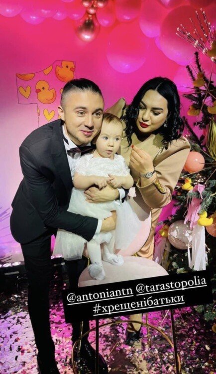 З нагоди дня народження Наталка Карпа влаштувала вечірку, на яку запросила зіркових гостей. Одним із них був Тарас Тополя. Вокаліст гурту “Антитіла” став хрещеним батьком для маленької Злати. На фото він щиро обіймає дівчинку.