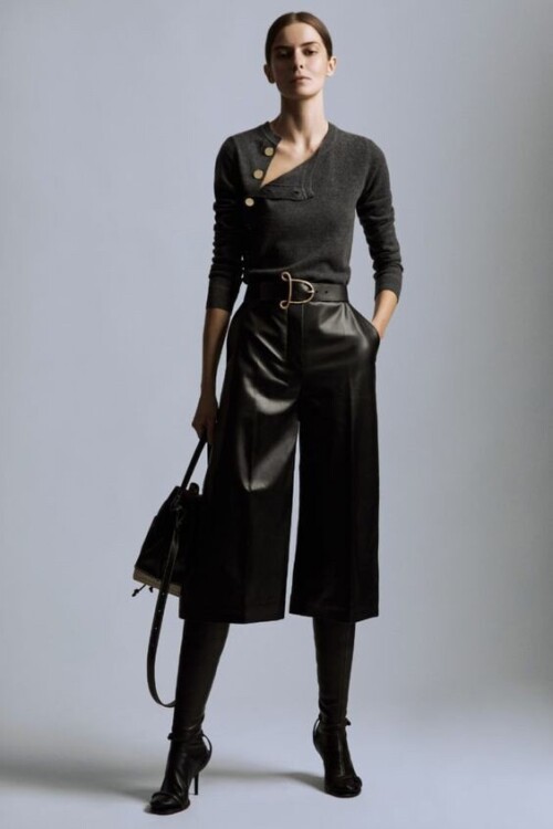 Це той випадок, коли практичність і модні віяння дружать не перший сезон. Шкіряними у вашому гардеробі можуть бути штани, спідниця або навіть сукня. Поєднуйте їх з трикотажем, якщо хочете затишку і з шовком, якщо хочеться свята. Лакована шкіра теж виглядає ефектно, але це досить небезпечний варіант – невірна довжина або крій можуть зіграти з образом злий жарт. Щоб не помилитися, робіть ставку на матову шкіру.