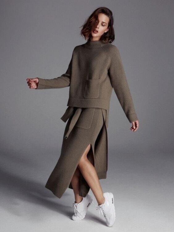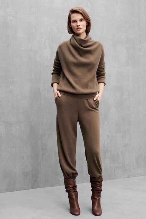 Він може бути вовняним або бавовняним – на ваш розсуд. Якщо ви любите більше спортивний стиль, вибирайте костюм з худі. А якщо ви хочете більш класичний варіант, обирайте комплект з джемпером без капюшона. Такий костюм можна поєднувати і зі шкіряною курткою і з пальто – такий look неможливо зіпсувати нічим. Що стосується кольору – фаворитом осені є беж, гірчичний і темно-зелені відтінки. Але це все лише рекомендації. Якщо вам до душі червоний – сміливо вибирайте його і створюйте собі настрій.