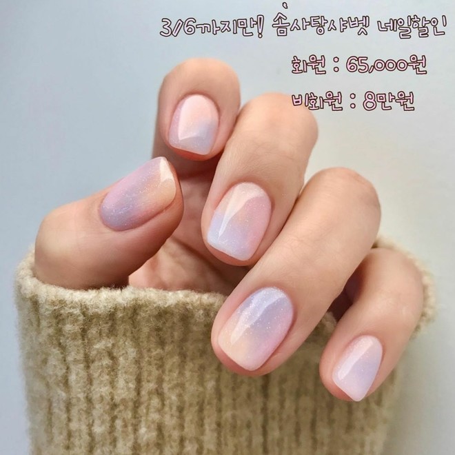 Один з найактуальніших відтінків гелевого покриття нігтів цієї весни має химерну назву «coral universe»: це складний пастельний колір, що поєднує в собі рожевий, персиковий, блакитний і бузковий відтінки.