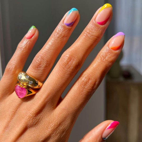 Френч – класичний манікюр, який підійде кожній жінці. Чому б цього літа не привнести в нього трохи фарб! Виберіть відтінки, що сподобалися, і пофарбуйте кінчики нігтів. Але, якщо ви все ж готові до експериментів — зробіть зворотній френч.