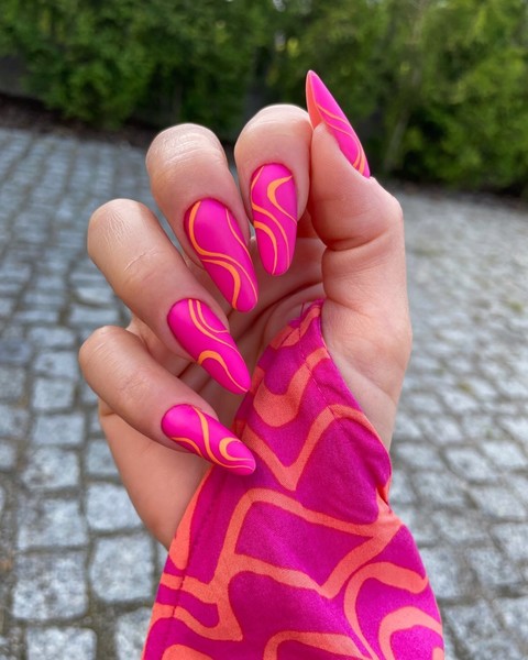 Найпопулярніший рожевий колір – неоновий відтінок Барбі, який ефектно виглядає на будь-якій дівчині. З ним можна зробити багато цікавих дизайнів. Наприклад, можна покрити ним усі нігті, а іншим відтінком намалювати деталі дизайну. Цей трендовий манікюр виділить вас з натовпу!
