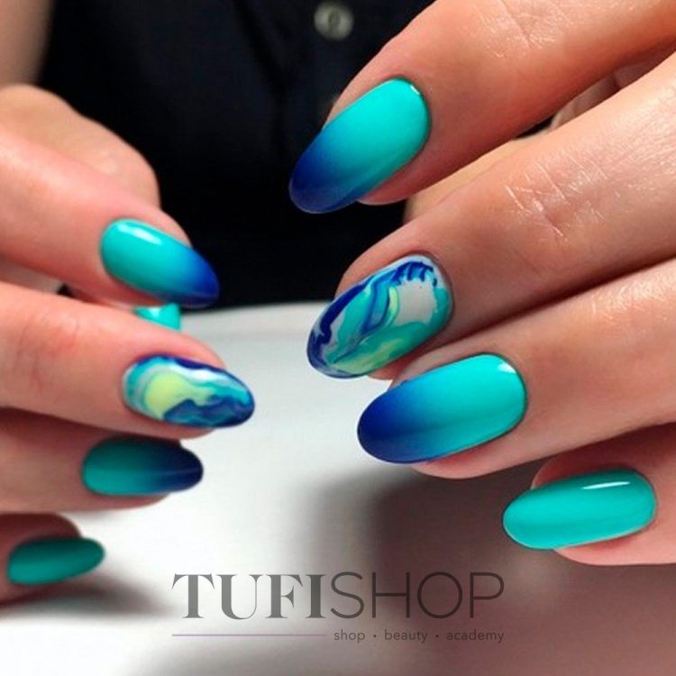 Синій, зелений та помаранчевий давно стали класичними відтінками манікюру. Їхнє поєднання нагадує про те, як Земля виглядає з космосу: зелена рослинність, синя вода та вкраплення помаранчевих пустель.