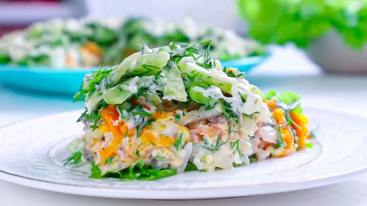 Ніжний, легкий та дуже смачний салат з консервованого лосося