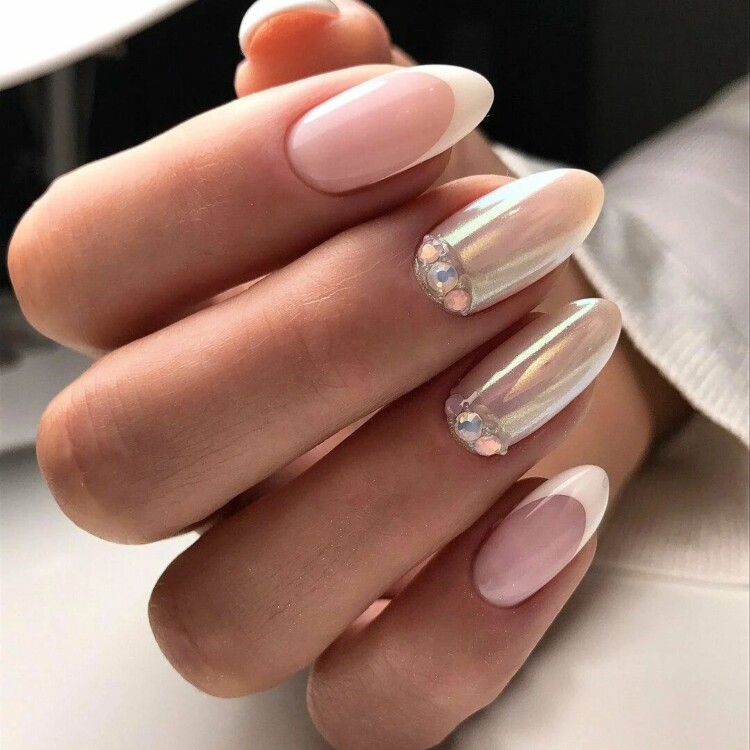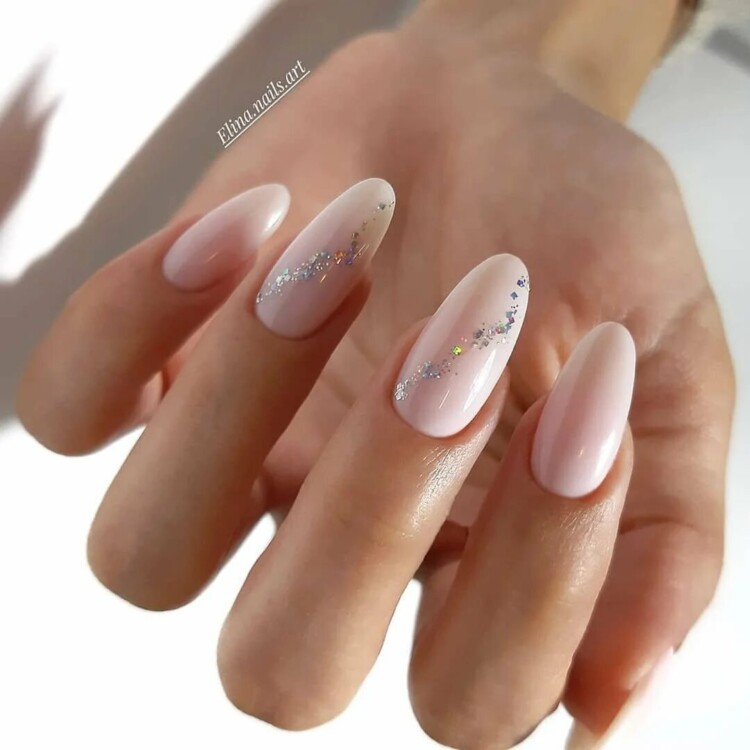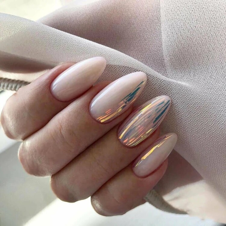 Презентабельно виглядає молочний відтінок. Він прекрасно гармонує з будь-яким елементом декору. Такі відтінки візуально роблять нігтики довшими. З таким відтінком можна виконати пару нігтиків з акцентом на декор. Наприклад, фольга будь-яких забарвлень може доповнити такий манікюр.