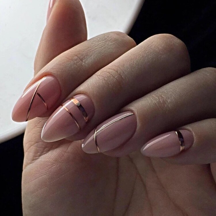 Якщо вже не хочеться малювати на нігтях флористику, краще вибрати абстракцію. Вона сама по собі оригінальна. Навіть прості лінії з фольги вже можуть додати особливого акценту на нігтиках. Також варто розглянути можливість матового виконання. “Бархатистість” зробить ваш образ особливим.