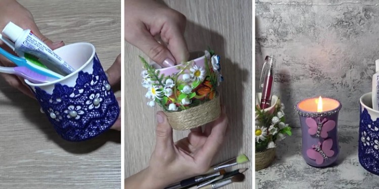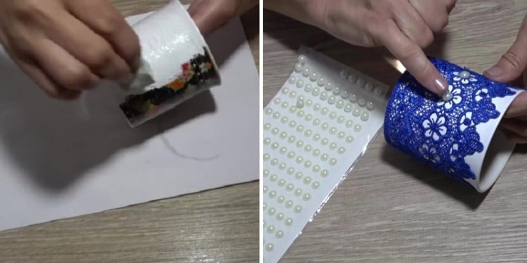 Щоб змайструвати красиву і зручну склянку для олівців, зубних щіток або свічник, вам знадобляться такі пристосування: ножиці, клей, мотузка, мереживо і стрічки, штучні квіти, намистини і стрази. Але з самого початку потрібно ретельно знежирити саму чашку.