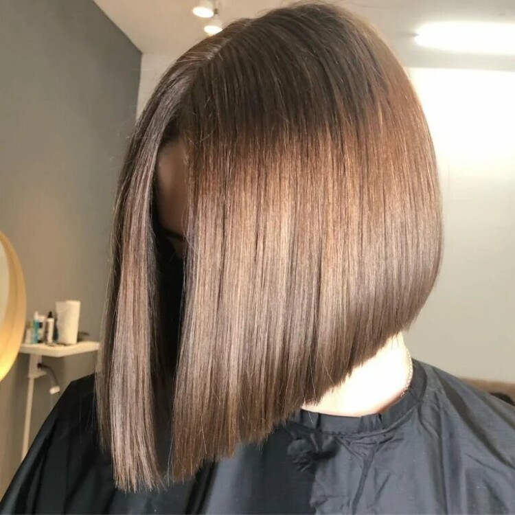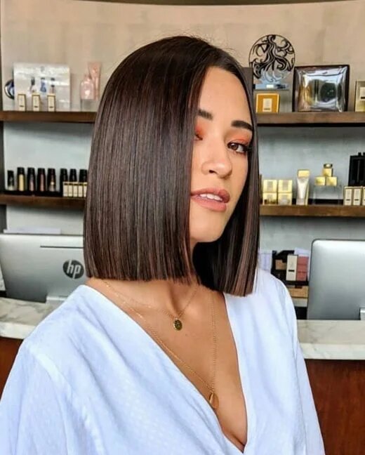 Пряме гладке каре середньої довжини – це вже класика. Пограйте з довжиною і чіткістю зрізу: він може бути рівним або злегка філірованим на кінчиках для більш м’якого образу.