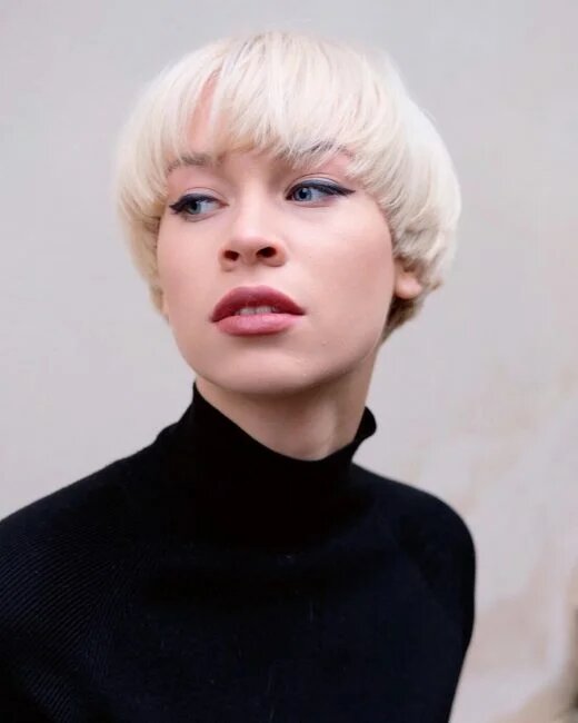 Стрижка “чаша” – трохи ретро, трохи з майбутнього. У наступному сезоні вона буде як ніколи популярна. Цей варіант з м’яким переходом від об’єму до голої потиличної частини виглядає жіночно і мило. Довжина зверху дозволить вам придумувати найрізноманітніші укладання.