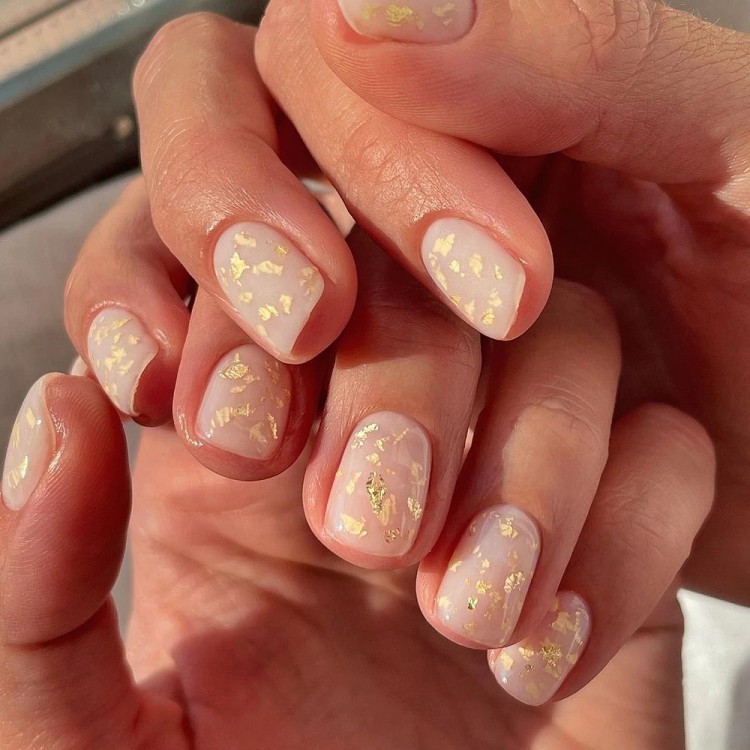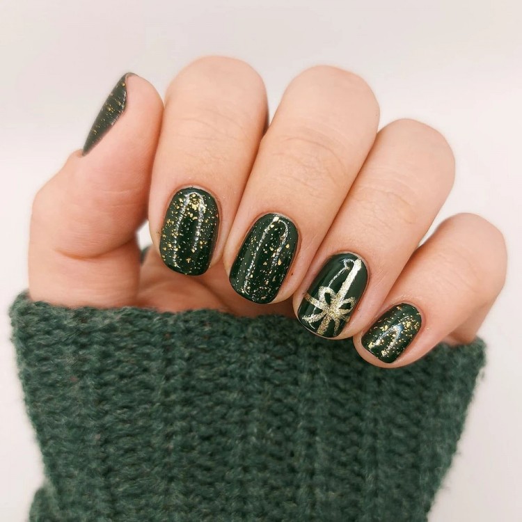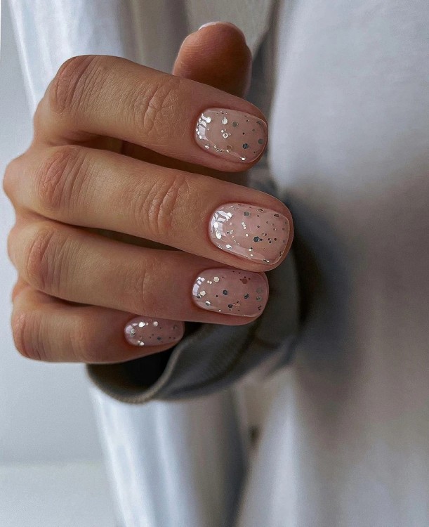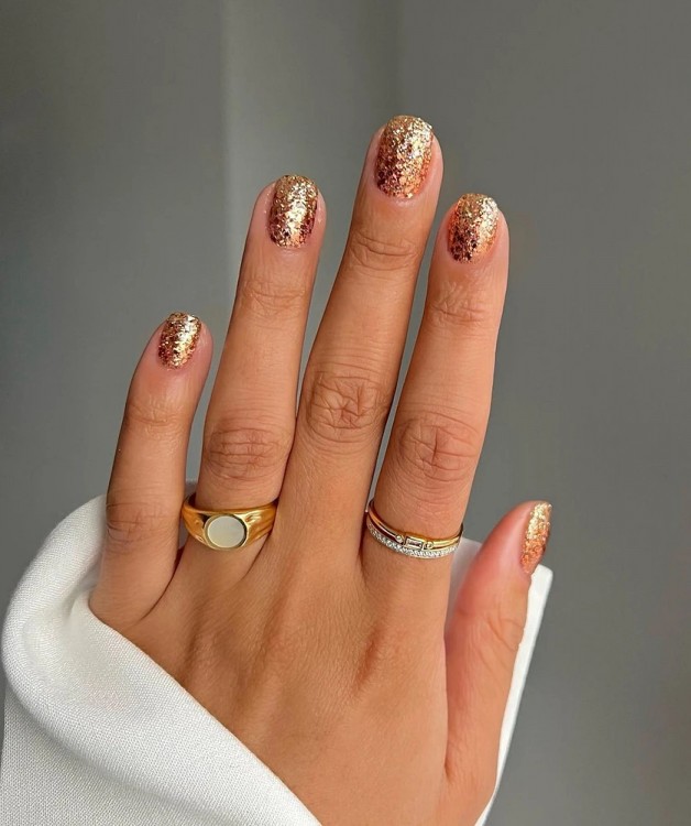 Якщо ви прихильниця коротких нігтів та шукаєте модний варіант манікюру для новорічної ночі, зверніть увагу на гліттер. Частинки, що переливаються та мерехтять, можуть бути різного розміру і забарвлення. Хочеться золота? Вибирайте великий гліттер, який виблискуватиме в унісон із кулями на ялинці та бенгальськими вогнями.