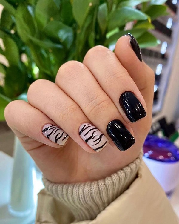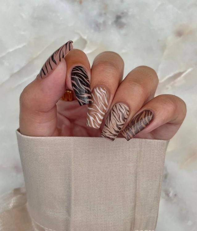 Дехто вважає, що манікюр на рік Тигра повинен відображати символ наступного року. Тому анімалістичний принт, що імітує забарвлення шерсті цієї дикої тварини, постійно виникає в списках клієнтських запитів nail-студій. Помаранчевий взимку виглядає дивно і безглуздо, а ось коричневі відтінки в тренді, тому сміливо можна взяти їх за основу. Білий теж може стати чудовою підкладкою.