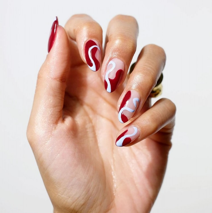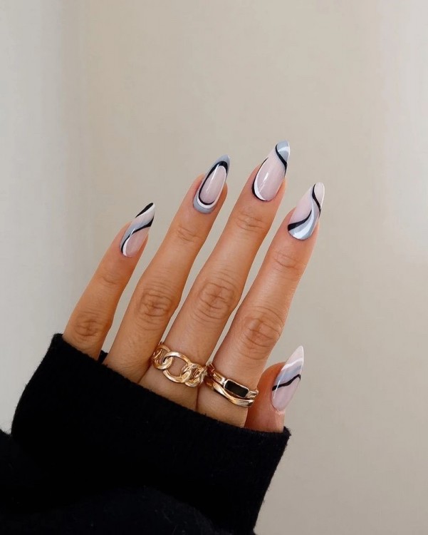 Хочеться чогось нового? Тримайте стильний тренд останнього часу. Графіка та чіткість усім набридла. У топ вриваються кольорові закручені лінії. Дизайн дозволяє вибрати будь-які відтінки лаку, зробити манікюр яскравим чи стриманим. Для першого варіанту обирайте рожевий, червоний, зелений. Для другого – пастельні відтінки блакитного, бежевого.