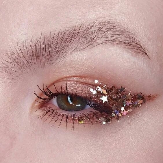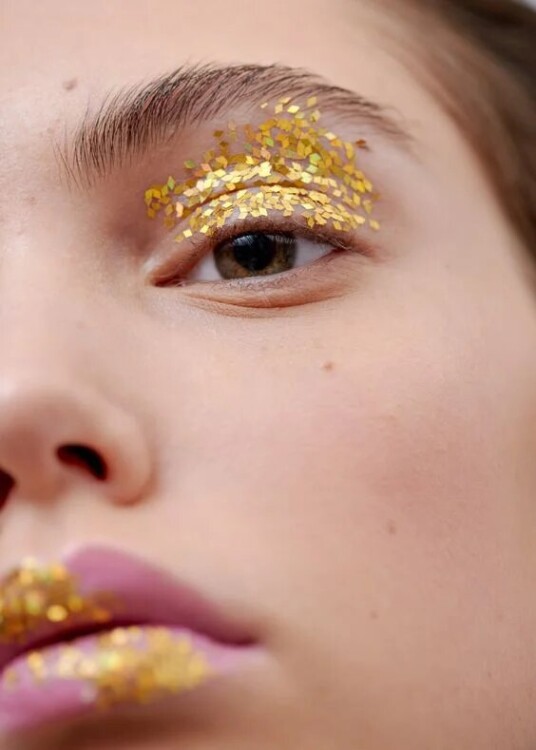 Акцент з блискіток найкраще зробити на повіках або губах.