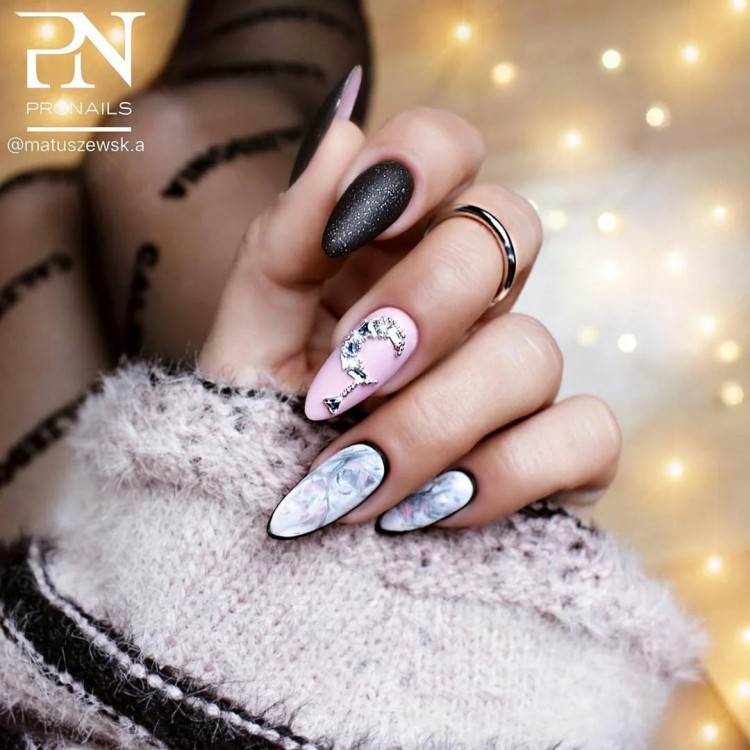 Щодо форми нігтів, то тут немає жодних обмежень. Актуальний як мигдаль, і овал, квадрат і, навіть, балерина.