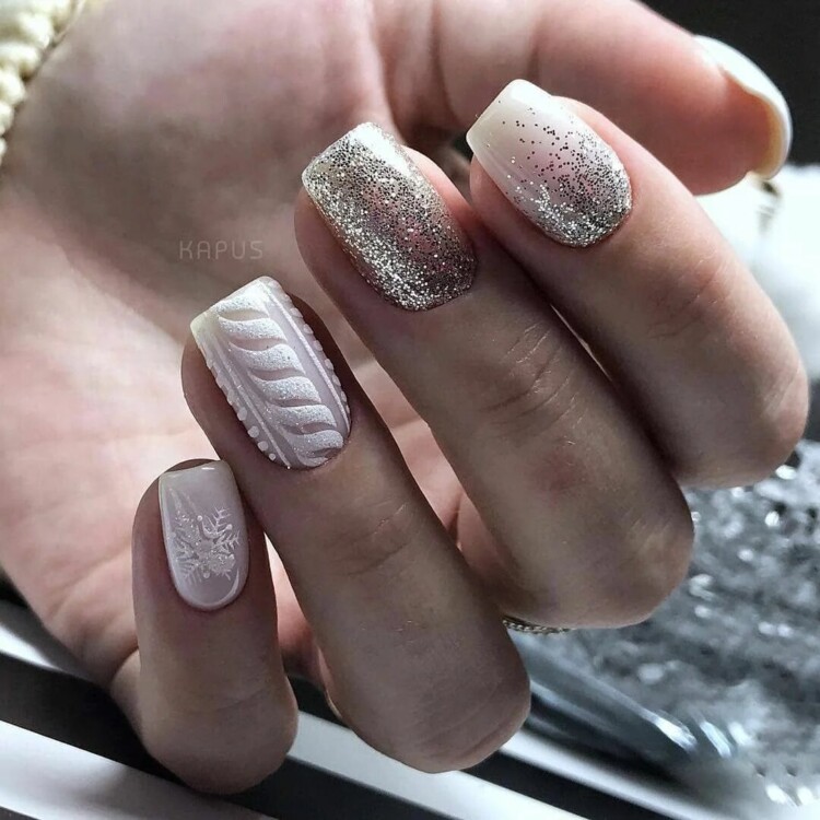 Білий, золотий, металевий, срібний, нюдовий – всі ці відтінки можна сміливо використовувати для створення новорічного ефектного манікюру. Також можна виконати комбінований манікюр і використовувати відразу декілька відтінків у виконанні.
