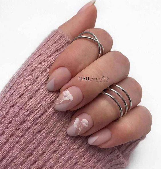 Якщо хочеться урізноманітнити однотонний нюд – користуйтеся трендами сезону. Це може бути слайдер-дизайн, проста геометрія у вигляді тонких ліній і фігур, матове покриття, рослинний принт. Зверніть увагу на наступні варіанти: