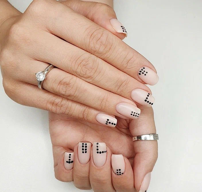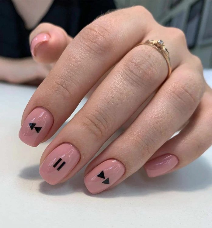 По-справжньому розкішне поєднання, яке виглядає стильно та дорого. Нюдові нігті в комбінації з чорними акцентами виглядають дуже виразно, незважаючи на свою лаконічність.