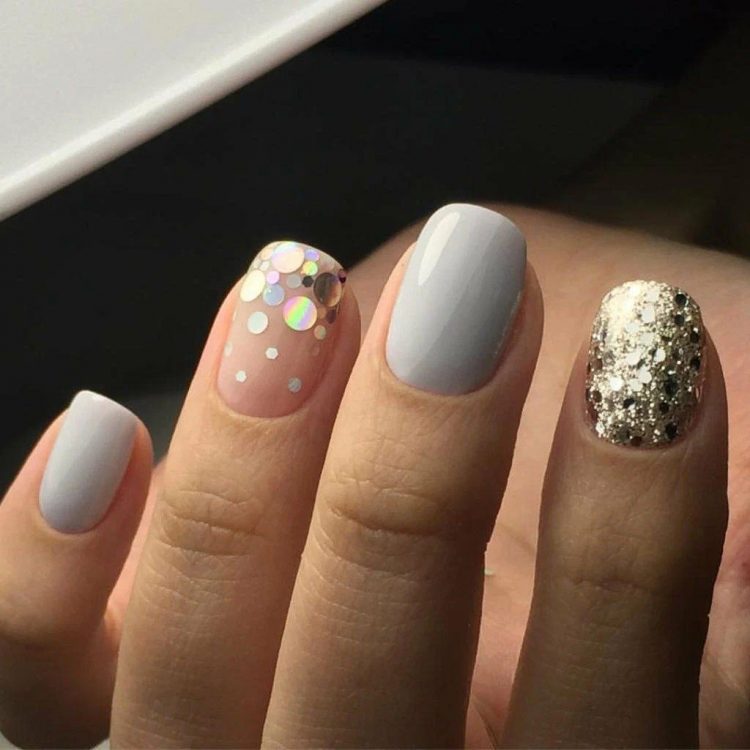Використання блискіток – це один із найпростіших способів прикрасити та урізноманітнити манікюр у нюдових відтінках. Делікатне мерехтіння надасть образу жіночності та вишуканості. Якщо ви хочете створити манікюр у строгішому стилі, вибирайте дрібні блискітки в комбінації з матовим покриттям, а для більш розслабленого вбрання на кожен день ідеально підійде глянсове покриття, прикрашене великими каміфубуками.