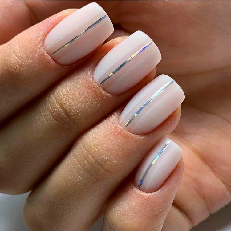 Перлинна або кольорова стрічка для манікюру ненав’язливо приверне увагу до нігтиків. Найбільш ефектно вона виглядатиме з бархатистим матовим покриттям.