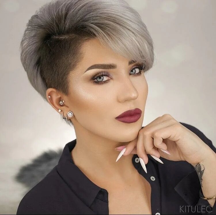 Для молодих і амбітних дівчат відмінним варіантом стане піксі з довгим або косим чубчиком, а жінки в більш зрілому віці будуть виглядати дуже стильно в платиновому відтінку з короткою піксі і таким же акуратним коротким чубчиком. Об’єм в піксі виходить за рахунок сучасної і затребуваної техніки – градуювання.
