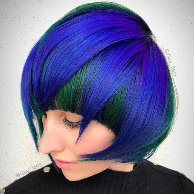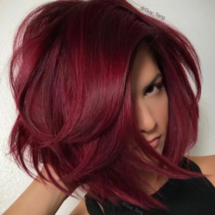 Об’ємний короткий боб – також один з найбільш затребуваних варіантів стрижок. Боб гармонійно закінчить образ будь-якої жінки. Чубчик в бобі може бути відсутнім, але для спокусливого вигляду жінки вибирають косий чубок і сучасний варіант чубок-шторку.
