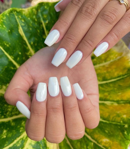 Любите класичний французький манікюр із білими кінчиками? Тоді спробуйте нафарбувати всі нігті цим кольором! Білий відтінок просто ідеальний для будь-якої пори року: взимку він гарно поєднується зі сніговим пейзажем навколо, а влітку просто ідеально підкреслює засмагу. Будьте впевнені, цей колір буде наймоднішим світлим відтінком наступного року.