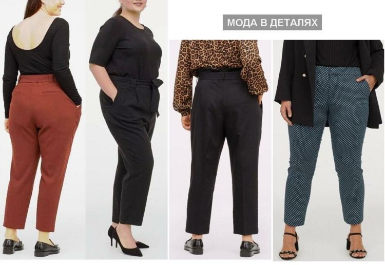 Ідеальний крій брюк для повної фігури – прямі, помірно звужені донизу, зі стрілками або без них. Дами високого зросту можуть носити моделі довжиною до щиколоток. А маленьким жінкам потрібні штани, довжина яких закриває задники взуття. Вони візуально подовжують ноги і зріст.