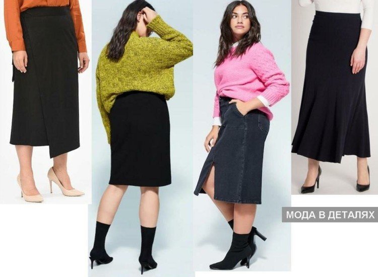 Всі відомі бренди сходяться на думці, що найкращим фасоном для повних жінок є пряма спідниця-олівець. Цей крій робить силует компактним і струнким. Довжина спідниці повинна закривати коліна.