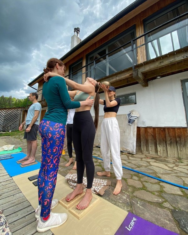Вона продемонструвала красиву усмішку та природну красу. Олександр Еллерт не лише відпочиває з коханою в Карпатах, а й з користю проводить час. Пара опановує практику стояння на цвяхах, медитує та займається йогою.