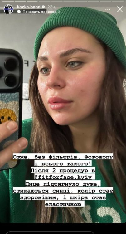 Втім, солістка гурту “KAZKA” вирішила негайно вирішити цю проблему. За словами Олександри Заріцької, вона почала відвідувати сеанси масажу обличчя. Чудовим результатом зірка поділилась в Instagram-stories.