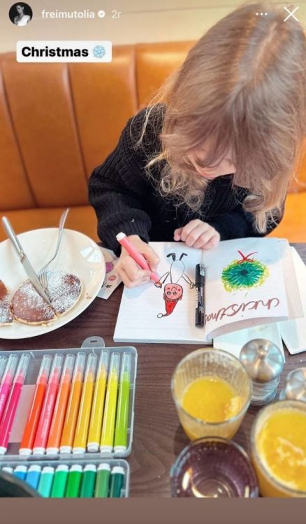 Ольга Фреймут показала свою підрослу донечку, якій наразі 6 років. Кадром жінка поділилась в Instagram-stories. Як виявилось, телеведуча побувала в кав’ярні. Компанію їй склали молодші донечка та син. Ольга Фреймут показала, як 6-річна Євдокія ласувала панкейками та малювала. Її обличчя телеведуча не показала.