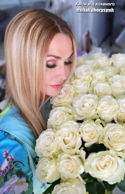 А ще знаменитість похизувалась неймовірно красивим букетом білих троянд. За словами жінки, такий подарунок на 55-річчя вручив їй коханий чоловік.