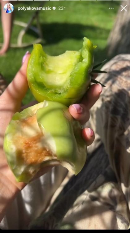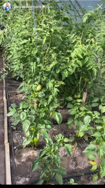 Нещодавно виконавиця похизувалась щедрим врожаєм. Світлинами вона поділилась в Instagram-stories. Оля Полякова заявила, що вже зібрала перший врожай зі свого городу та саду. Зокрема, співачка похизувалась капустою, огірками та іншими овочами. А ще вона показала, як смакувала яблуком й помідором, які виростила самостійно.