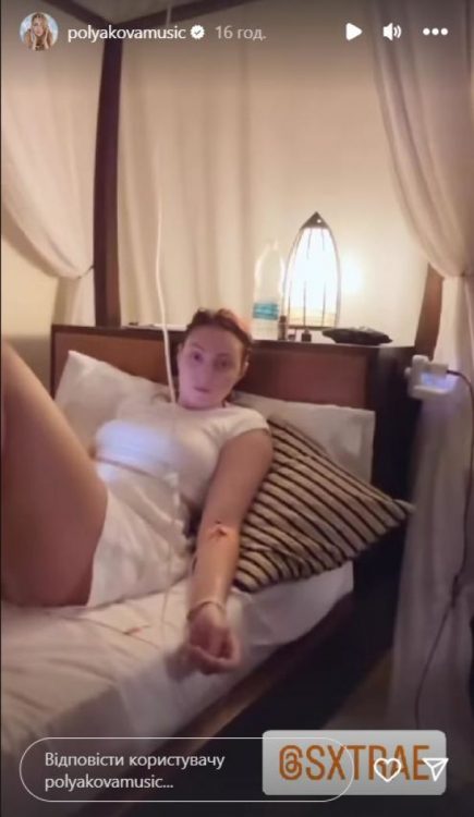 Оля Полякова відразу відправилась з дівчиною до лікарні. Там 18-річній Марії діагностували жовчнокам’яну хворобу. Нещодавно співачка розповіла про самопочуття доньки. В Instagram-stories вона поділилась кадром, на якому Марія позує під крапельницею.