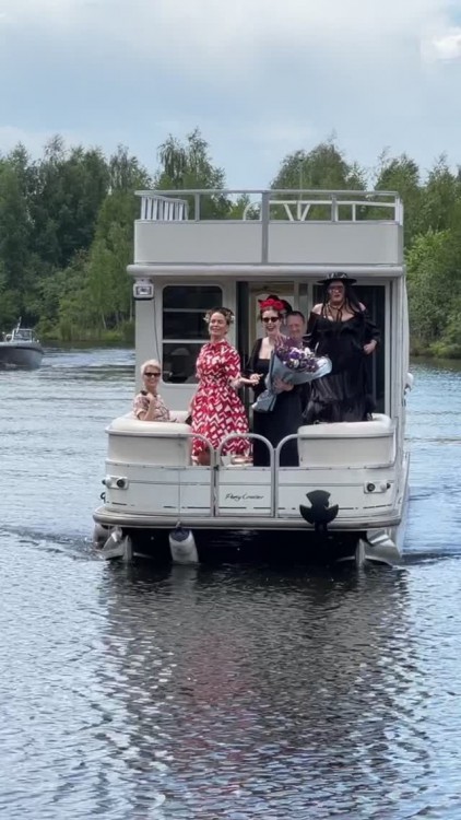 В мережі з’явились світлини, на яких Оля Полякова позує з чоловіком та гостями. В день народження коханого співачка одягнула красиву сукню фіолетового кольору. Свій образ вона доповнила яскравим макіяжем та квіткою, якою прикрасила волосся.