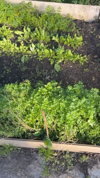 Як виявилось, зірка полюбляє свіжу зелень. В її теплицях ще досі росте базилік, петрушка, рукола, цибуля та щавель. Також співачка показала залишки помідорів й чебрець. А ще Оля Полякова похизувалась яблуневим садом.