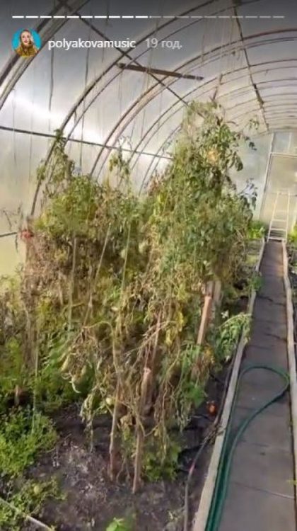 Не так давно зірка похизувалась власними теплицями й показала, що там росте. Кадрами співачка поділилась в Instagram-stories. До війни в теплицях жінки росло багато різних овочів та фруктів. Нещодавно Оля Полякова показала, що залишилося від її городу.